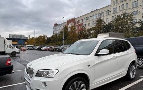 Белая BMW X3 2013 года выпуска с пробегом 220 000 километров, имеющая 3-х собственников в ПТС, дизельный двигатель объемом 2 литра и мощностью 184 лошадиных сил, автоматическую коробку передач, полный привод, систему курсовой устойч...