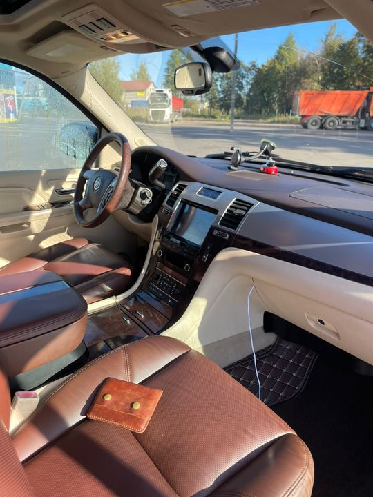 Продам Cadillac Escalade черного цвета, год выпуска 2008. Пробег 310 000 километров. Объем двигателя 6,2 литра. Мощность 409 лошадиных сил. Тип двигателя - бензин. Коробка передач - автоматическая. Привод полный. Автомобиль оснащен бортовым компьютером, электроприводом зеркал, системой курсовой устойчивости и иммобилайзером. Отличное состояние. Надежный и экономичный автомобиль. Не требует дополнительных вложений. Звоните и приезжайте на осмотр. Уверен, вы будете довольны покупкой! Непрокуренный салон. Фаркоп. Своевременное обслуживание. Комплект зимних шин в подарок.